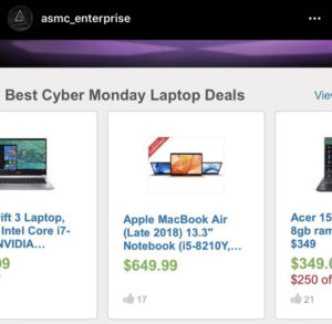 SlickDeals.com recognized one of ASMC Enterprises deals as one of the best laptop deals of Cyber Monday 2019.