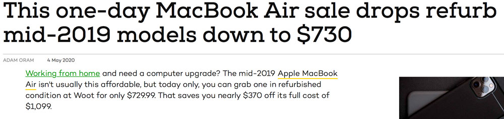 Affiliate Marketing Company imore.com writing an article about a MacBook Air Deal ASMC Enterprise ran on Woot.com.